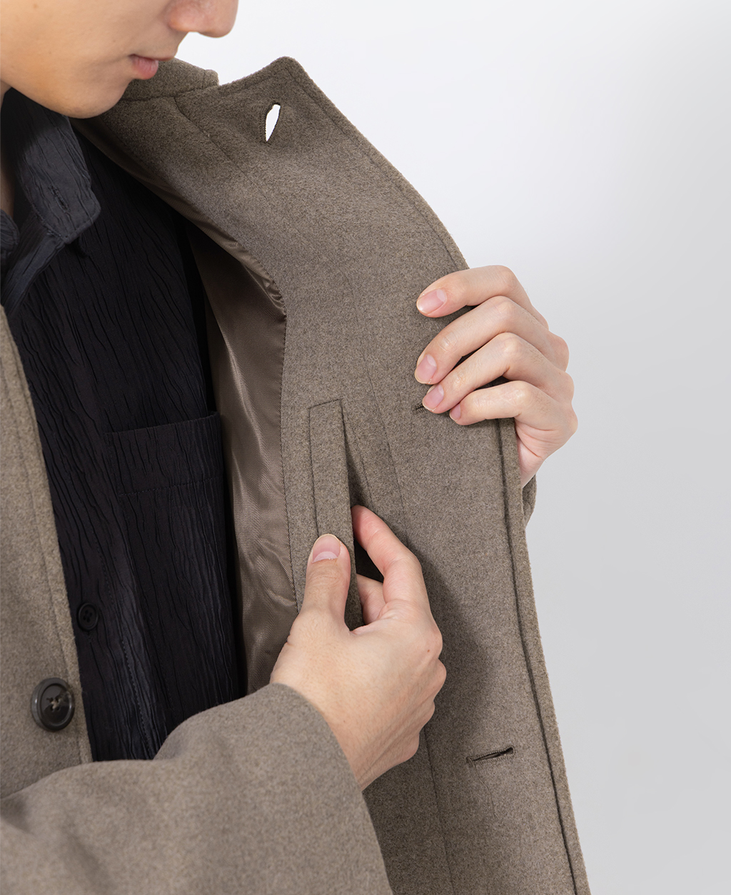 106 : 表布 : 78%聚酯纖維、19%羊毛、3%聚丙烯腈纖維 裡布 : 100%聚酯纖維