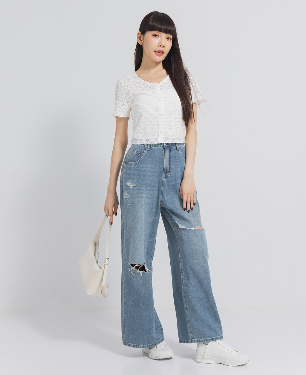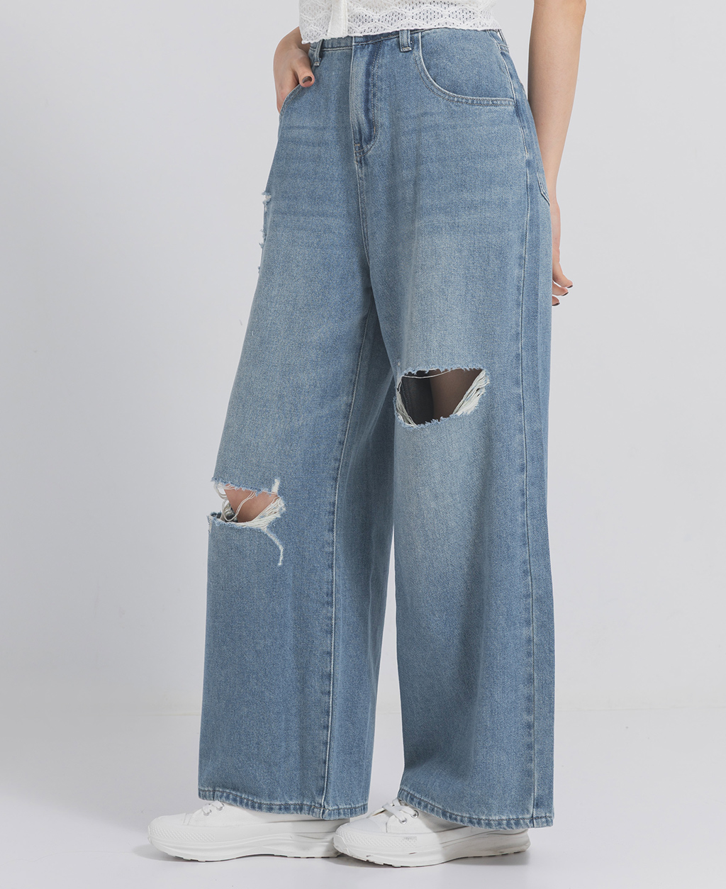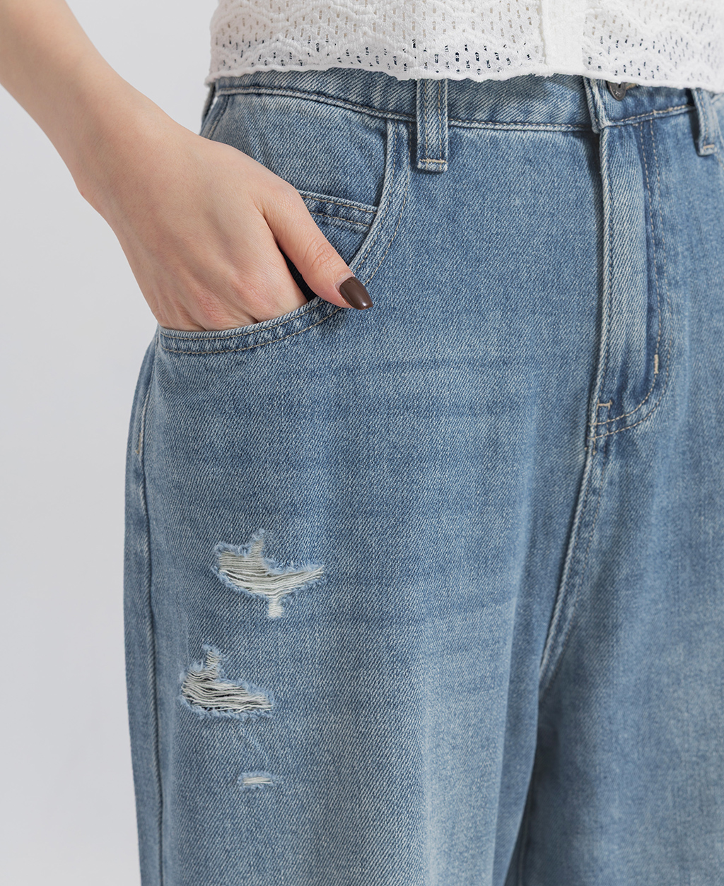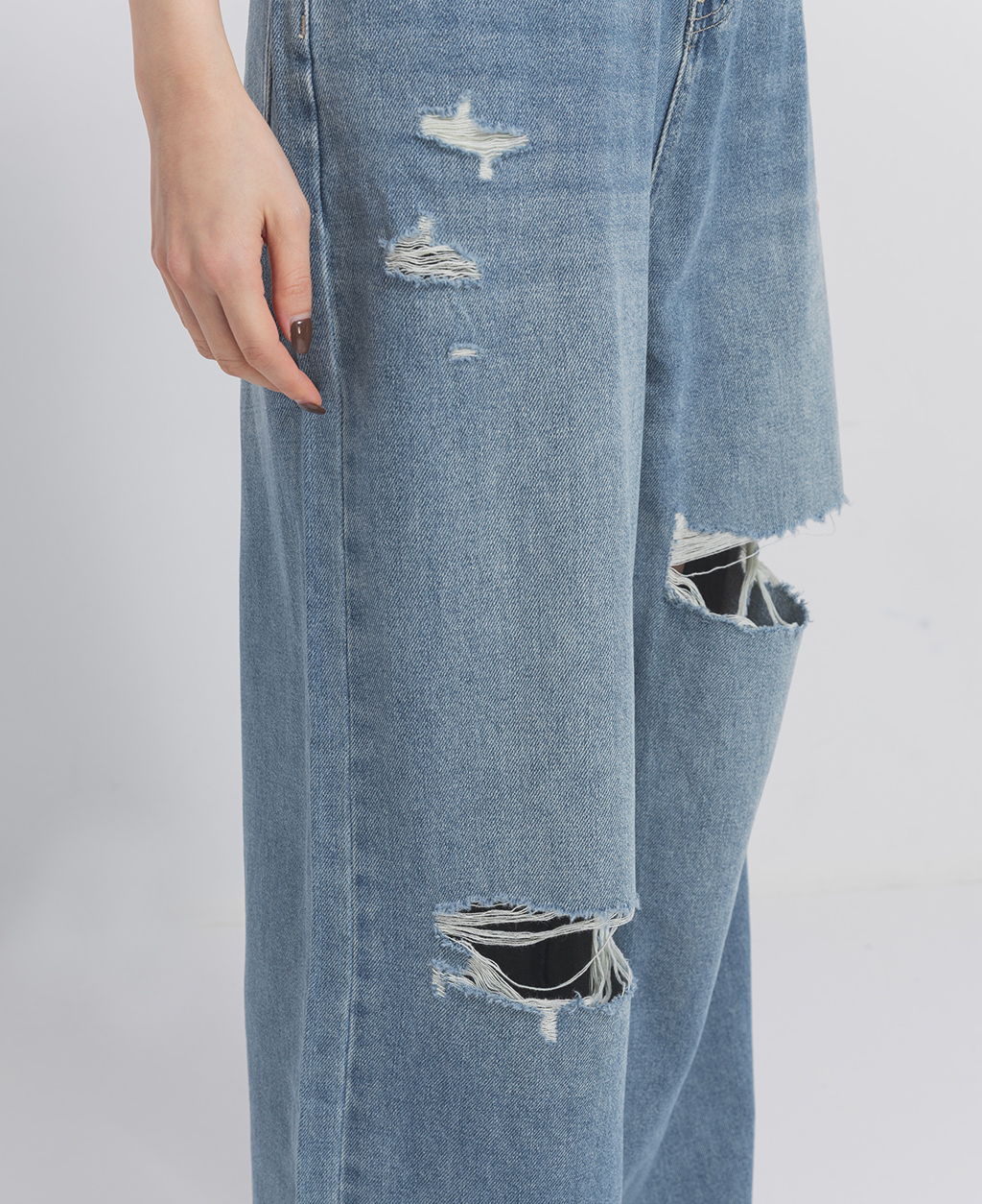 704 : 此牛仔商品具磨破、割爛之設計,隨穿著時間及清洗後所產生之裂紗、斷紗情形乃屬正常現象。洗滌時建議套入洗衣袋洗滌,謝謝。